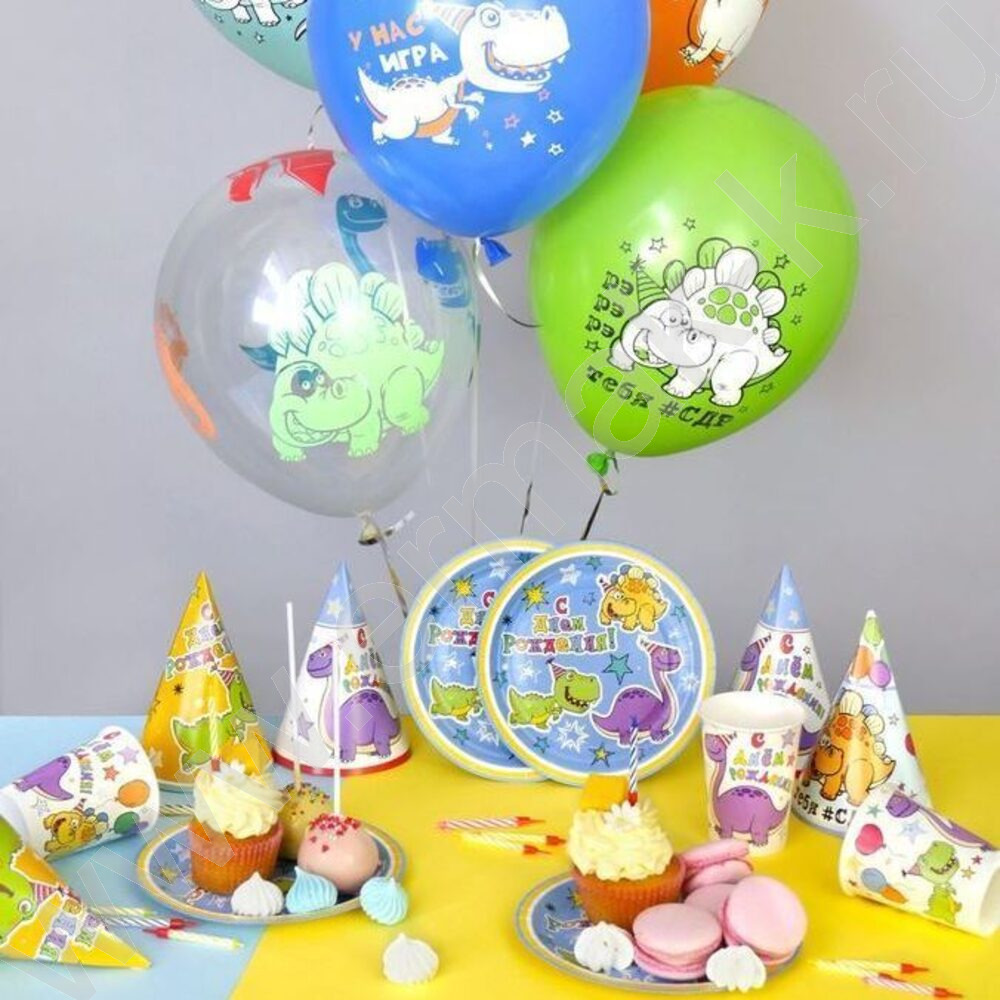 Тарелка бумажная 18см/8шт С Днем Рождения! Динозаврики