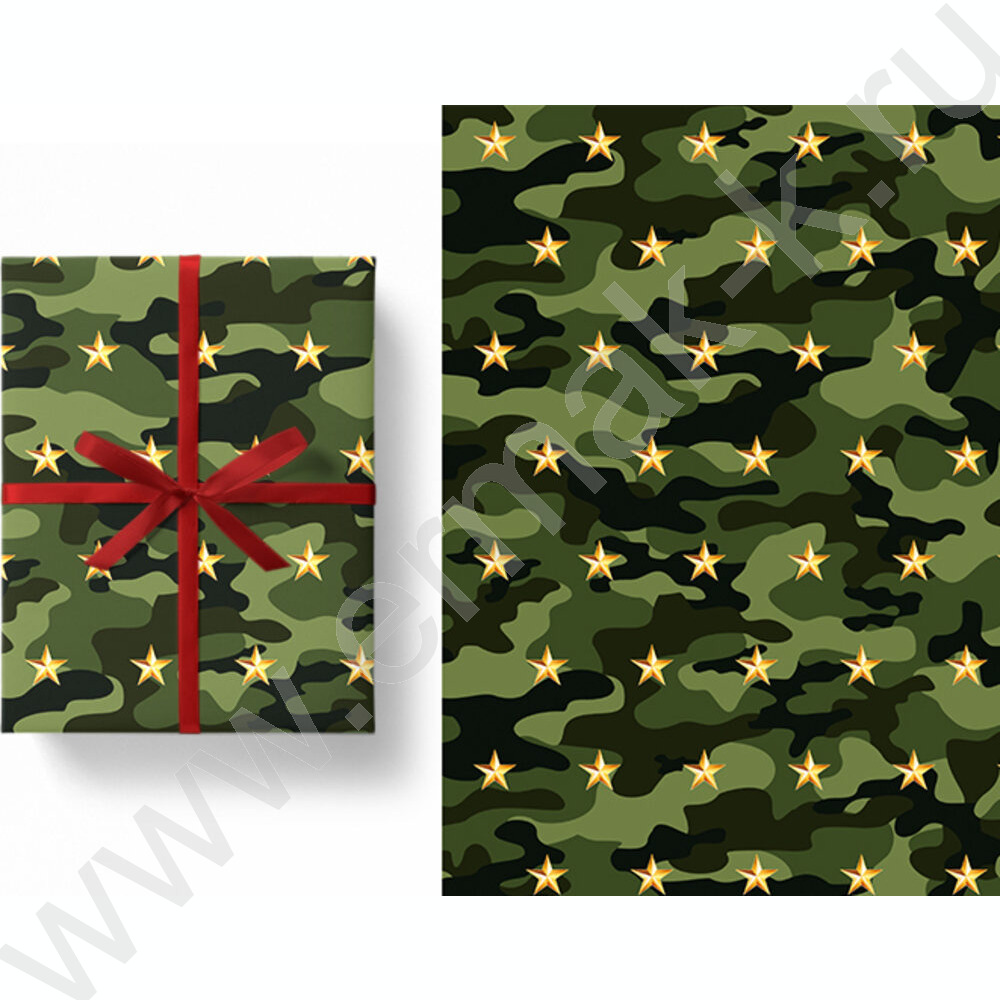 Бумага упаковочная глянцевая 100см*70см Милитари /80гр/м2