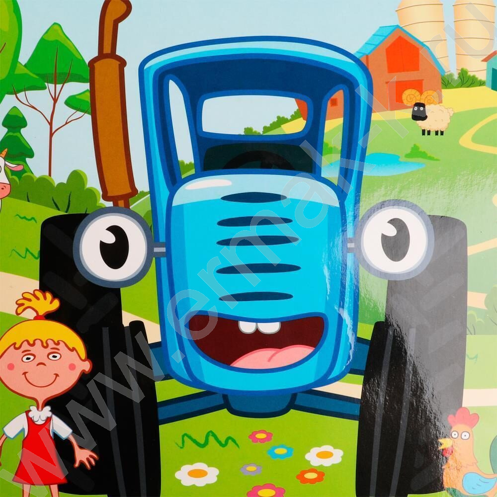 Пакет подарочный бумажный 30*30*30см Синий Трактор