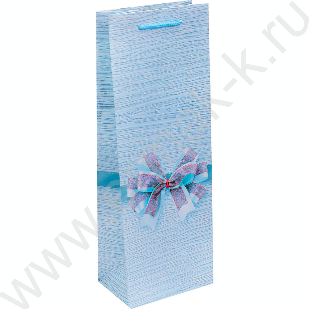 Пакет подарочный с матовой лам. 210гр 12,8*36*8,4см (Бутылка) Милый бантик, голубой