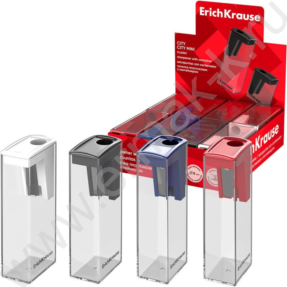 Точилка 1отв. пластик City, Classic /с контейнером /ассорти
