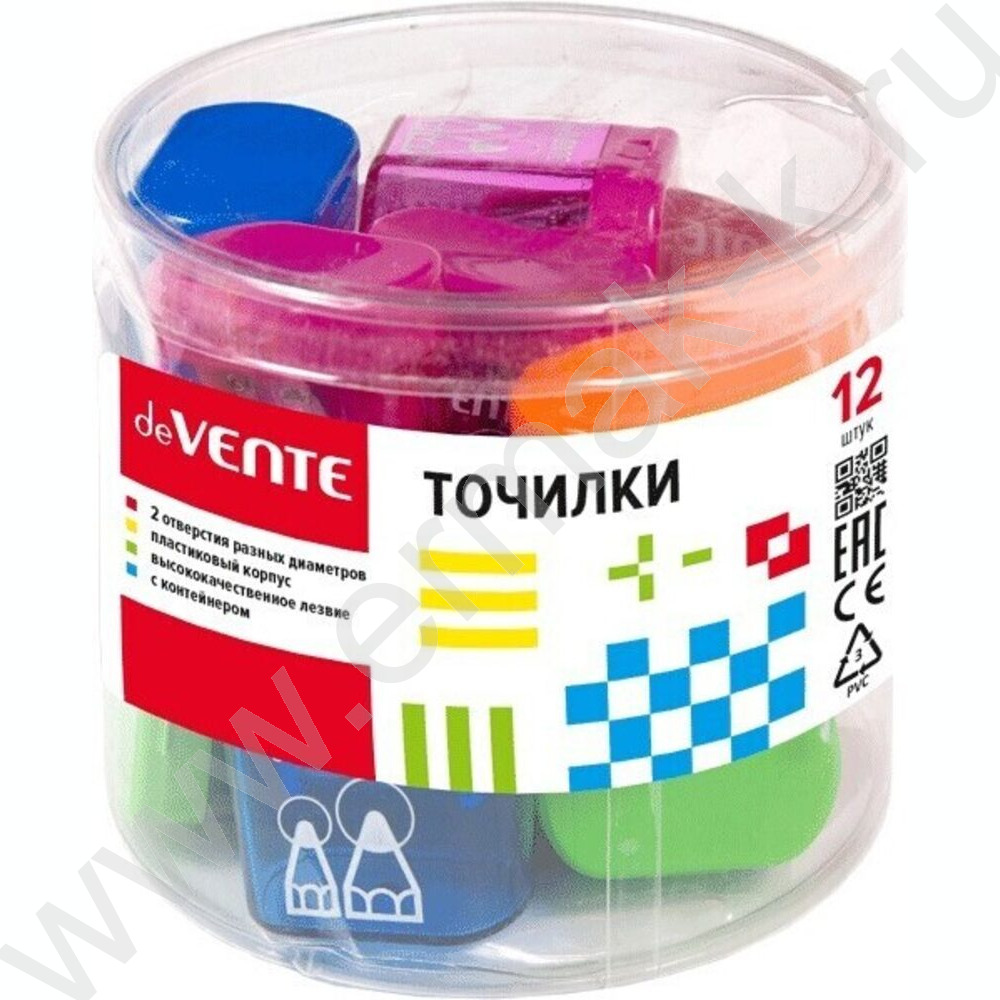 Точилка 2отв. разного диаметра, пластик /с контейнером /ассорти