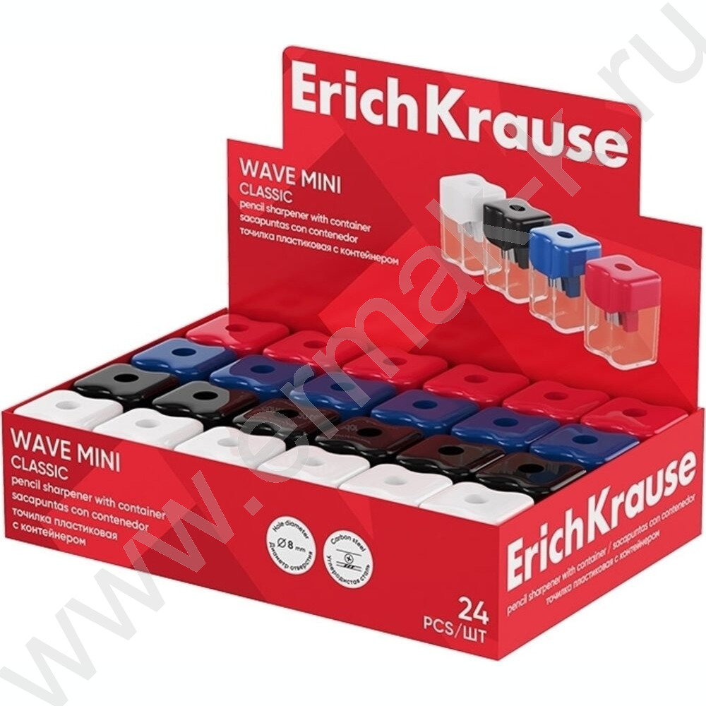 Точилка 1отв. пластик Wave Mini, Classic /с контейнером /ассорти NEW