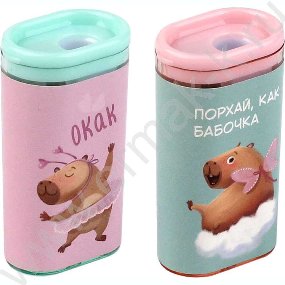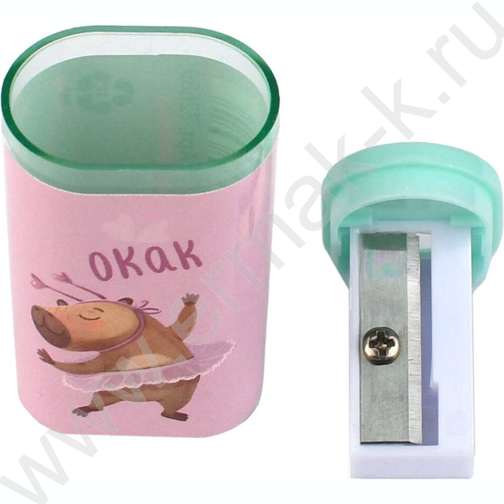 Точилка 1отв. пластик "Капибара-милашка" /с контейнером /ассорти NEW