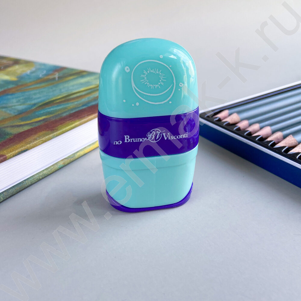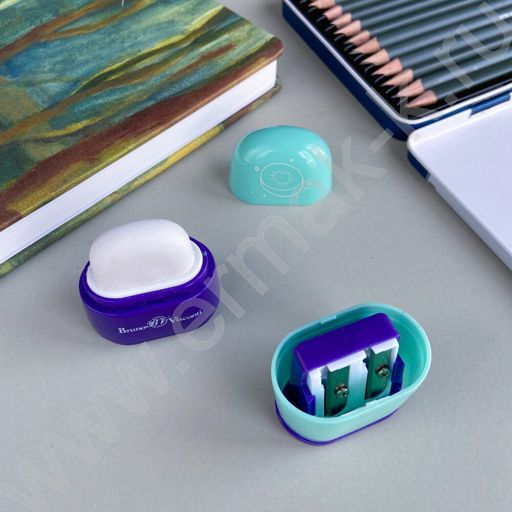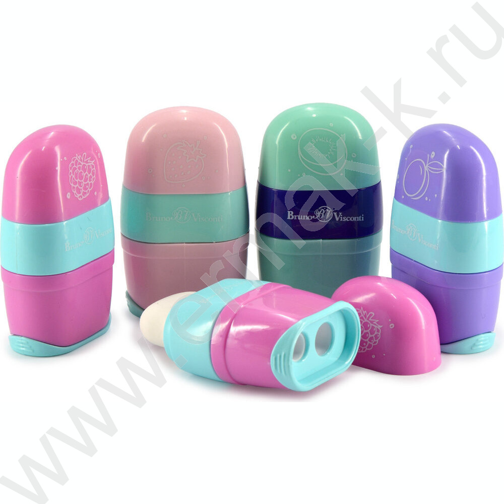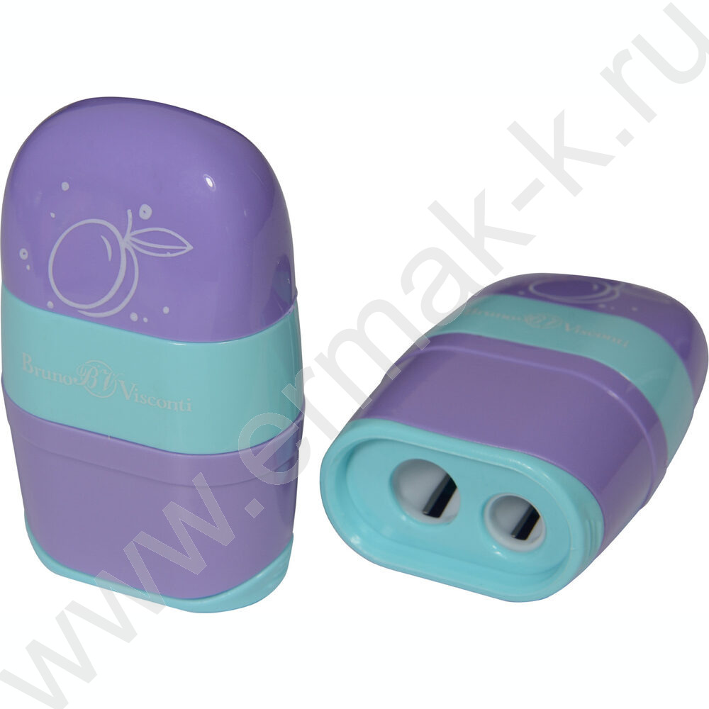 Точилка 2отв. пластик/с контейнером+ластик/ Фруктики ассорти NEW