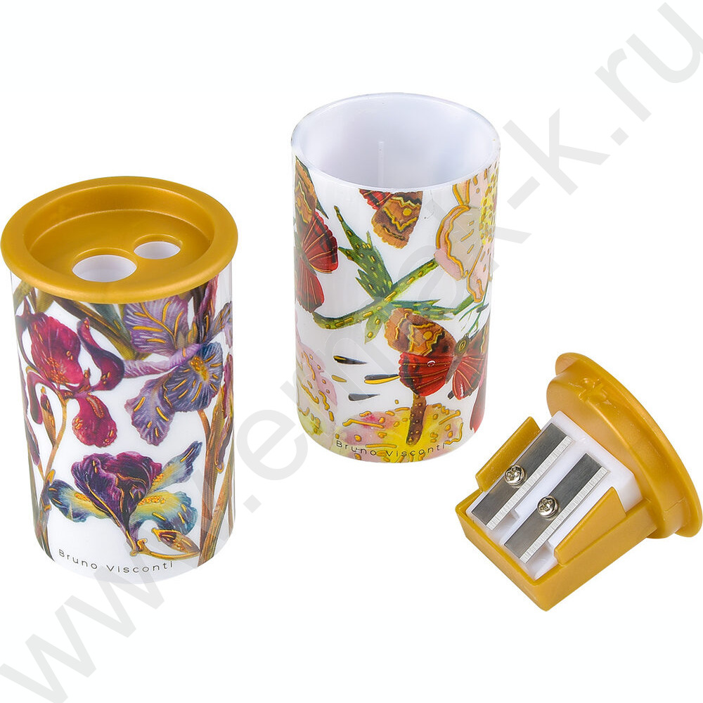 Точилка 2отв. пластик/с контейнером/ FLORA. BLOOM FLOWERS ассорти NEW
