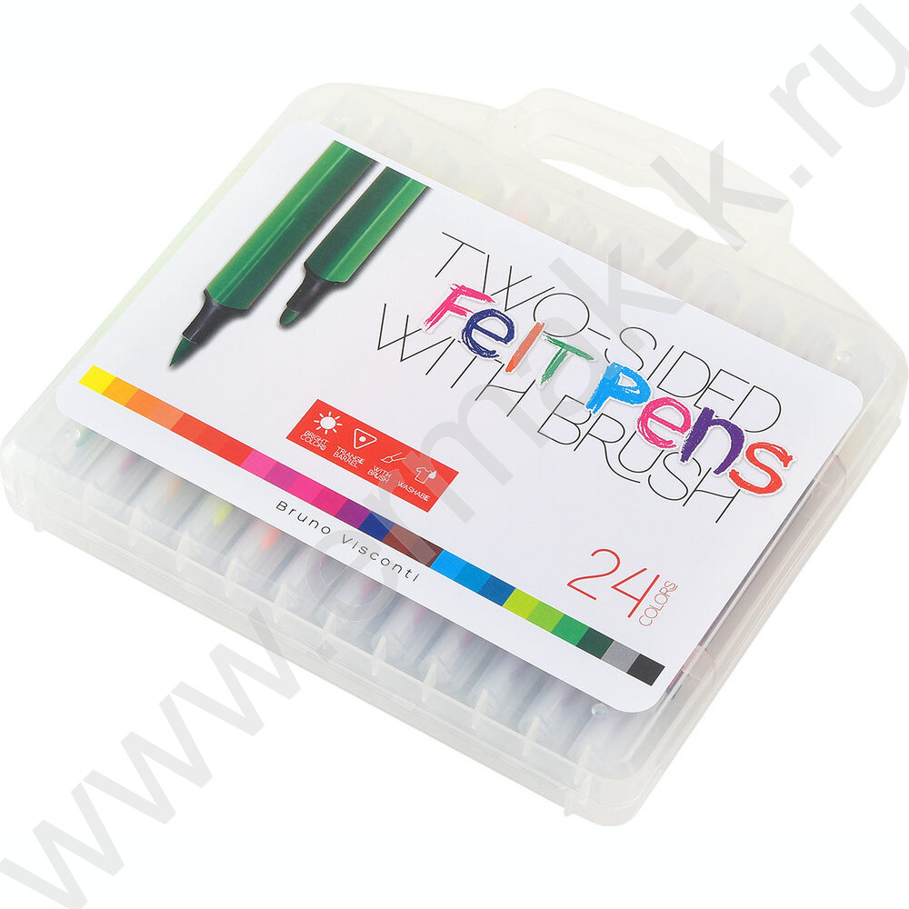 Фломастеры 24цв Bright colors /кисточки двусторонние в пл.пенале NEW