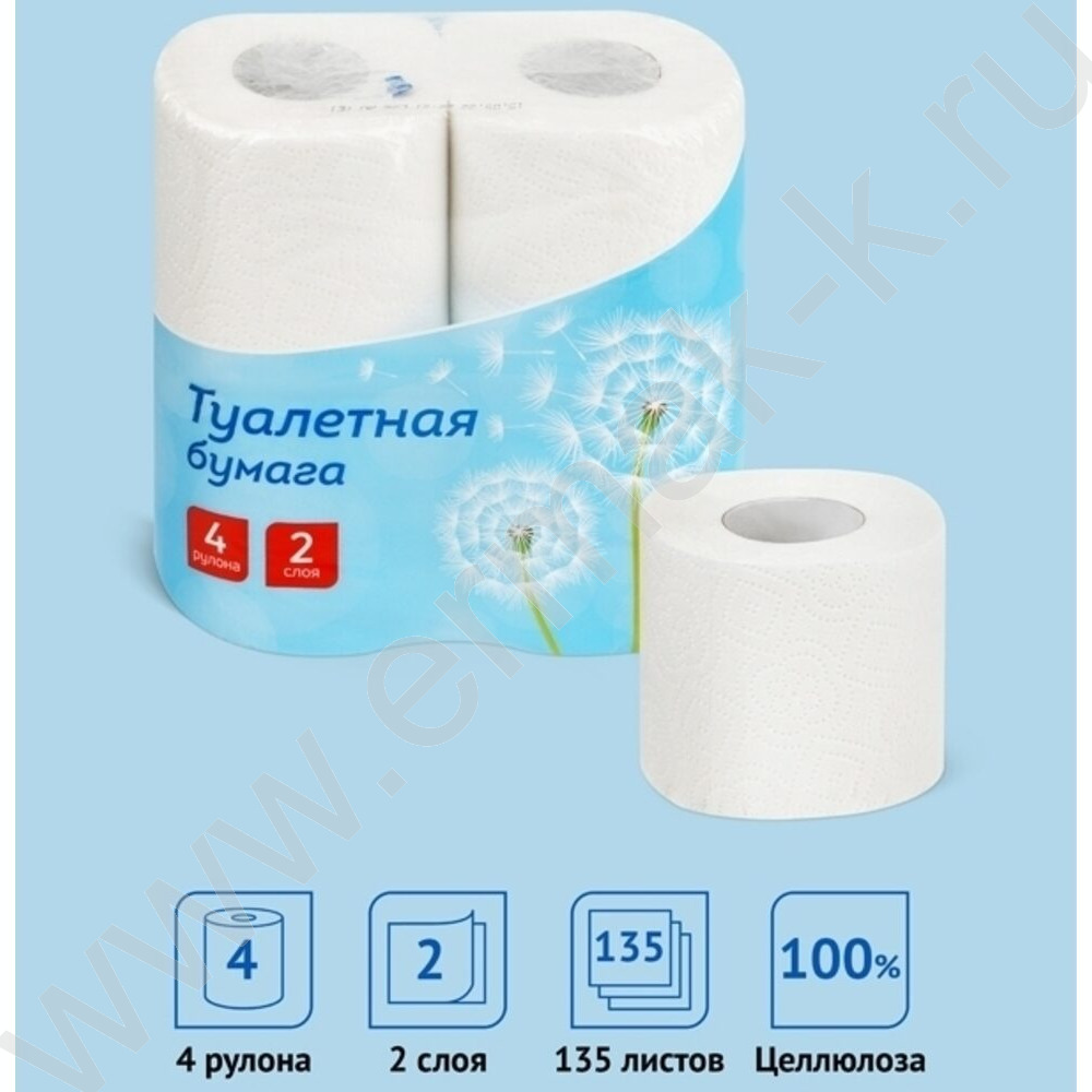 Бумага туалетная 2-сл 4рул./уп белая /перфорация, тиснение