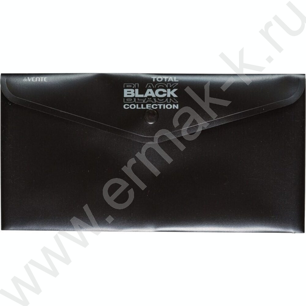 Папка-конверт на кнопке Travel-size DL "TOTAL BLACK" н/прозр. черная с дизайном 180мкм