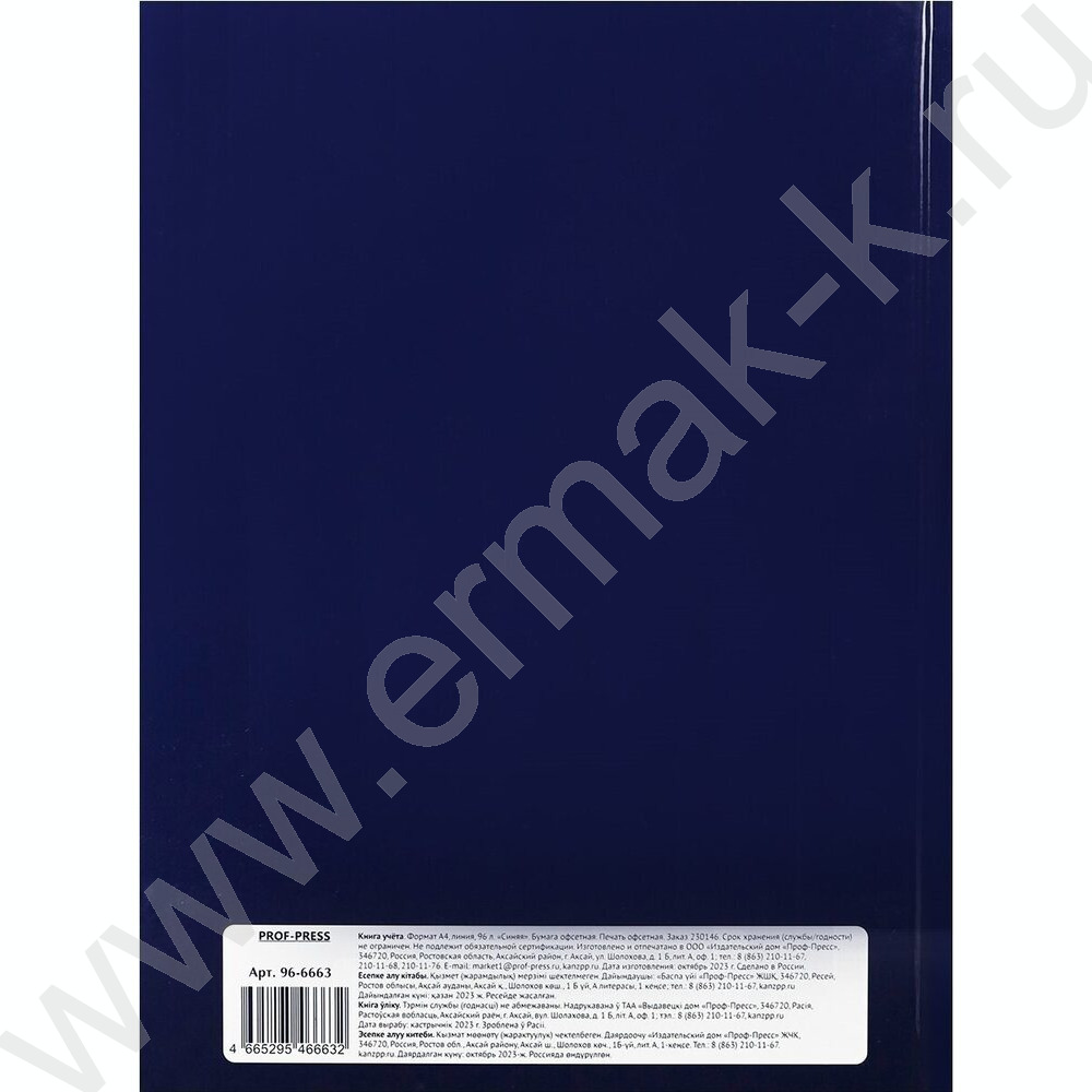 Книга Учёта 96л линия тв.обл.офсет синяя