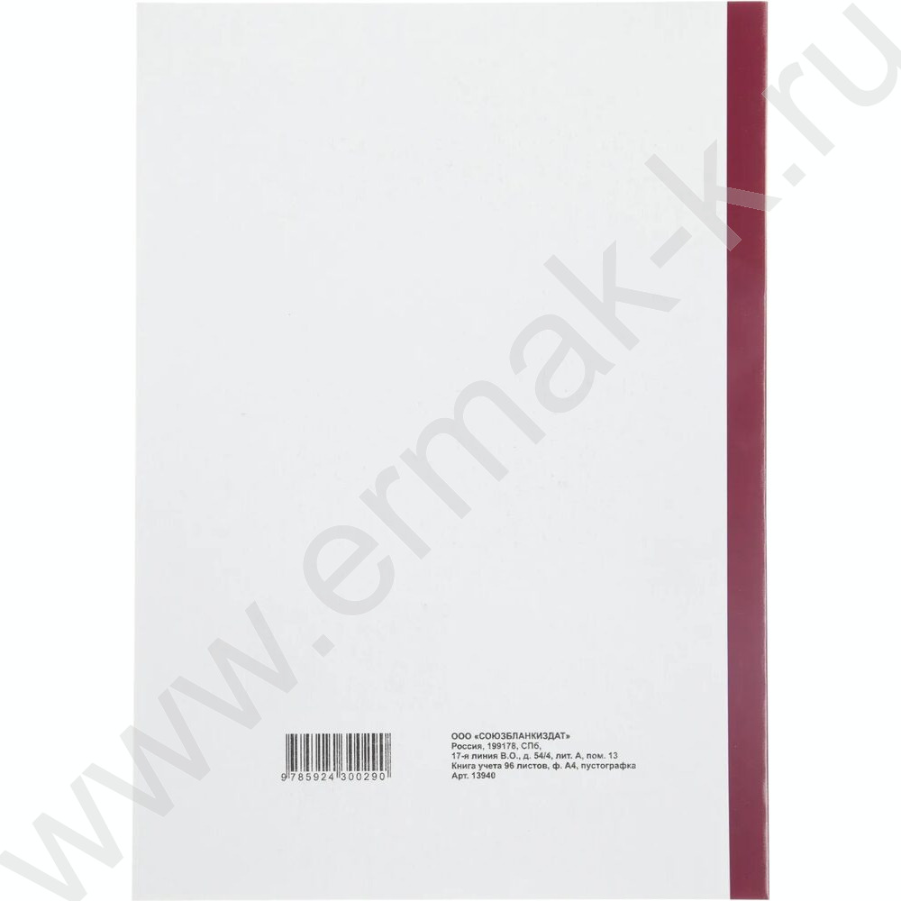 Книга Учёта бухгалтерская А4 96л пустографка /тв.обл. из картона + корешок б/вин