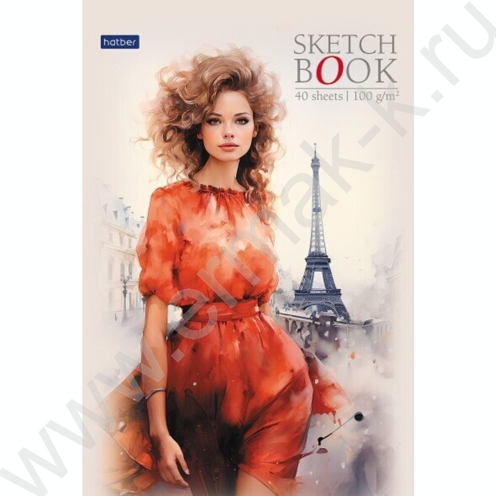 Скетчбук 40л А5 отрывная склейка/жесткая подложка "Незнакомки" без линовки 100г/к