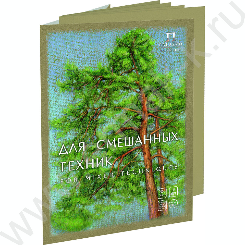 Папка д/смешанных техник А3 15л "Сосны" (св.-корич. 200г/м2)
