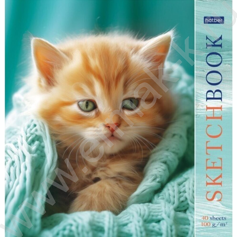 Скетчбук 40л 220*220 отрыв.склейка/тв.подложка "Котик в пледике" без линовки 100г/кв.м