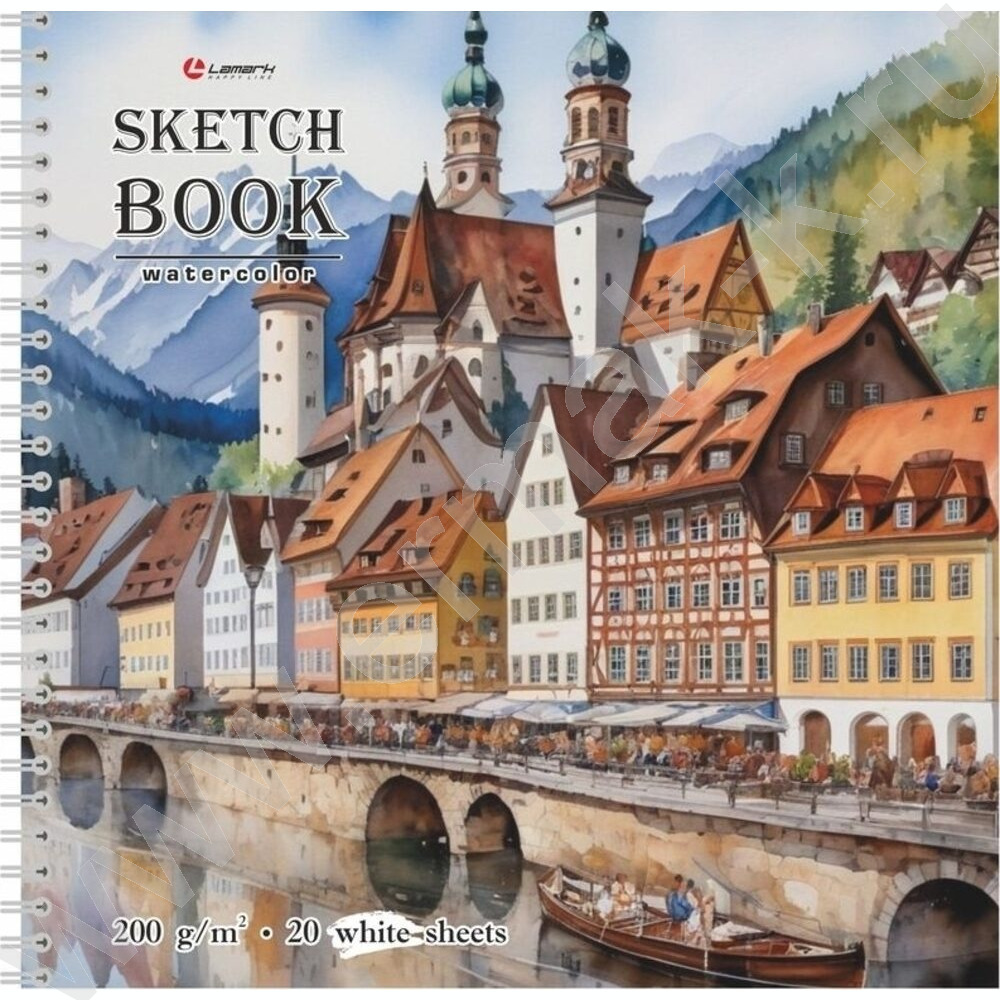 Скетчбук 20л 200*200 спираль сбоку "Старинный город" /тв.обл., бумага акварельная 200 г/кв.м