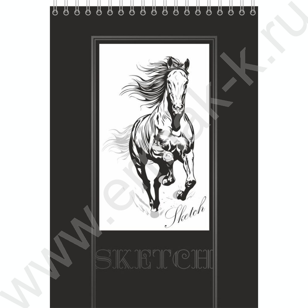 Скетчбук 40л А5 спираль сверху "Серебро - Лошадка" /выбор. УФ лак, твердая подложка, 100г/кв.м