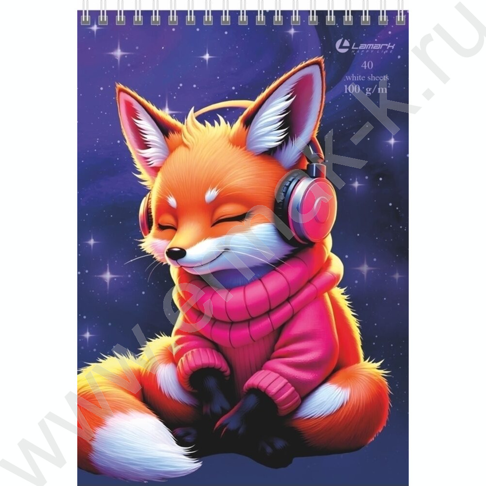 Скетчбук 40л А5 спираль сверху "Лисичка в тренде" /выбор. УФ лак, твердая подложка, 100г/кв.м NEW