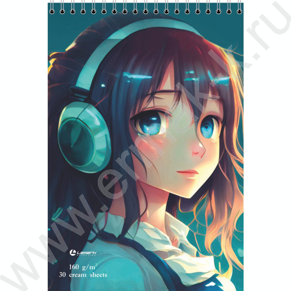 Скетчбук 30л А5 спираль сверху "Музыка" /твердая подложка, кремовая бумага 160г/кв NEW