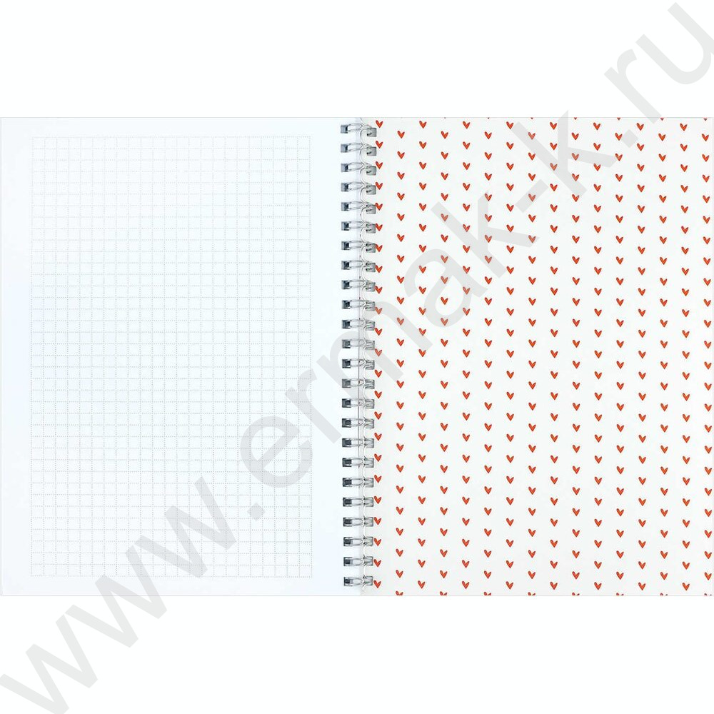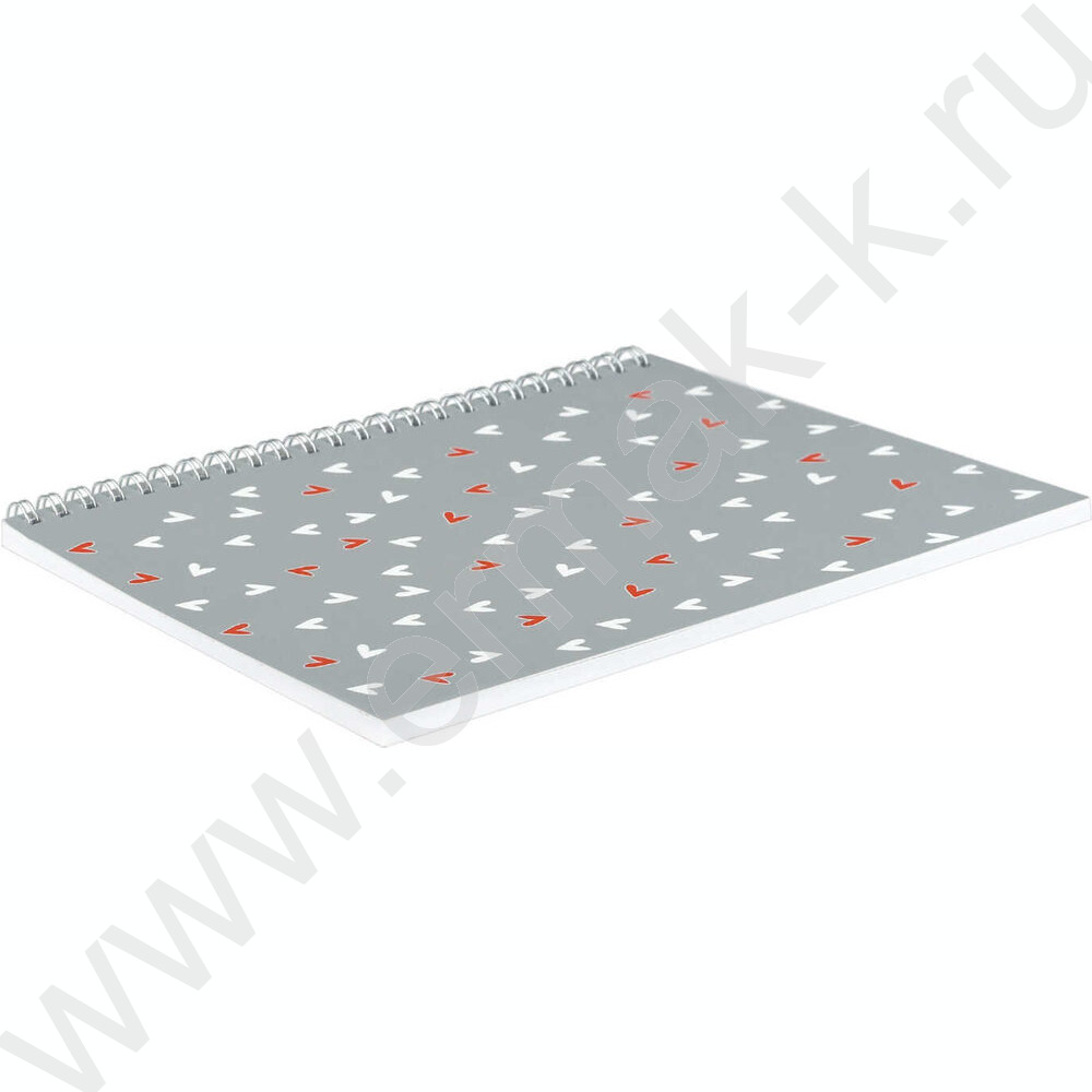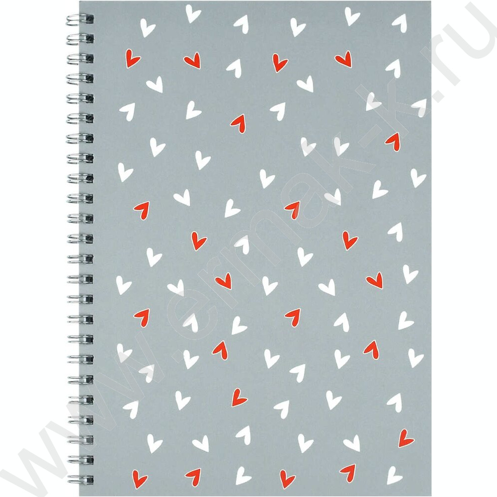Блокнот 48л А5 спираль "Сердечки на сером" клетка/мат.лам.