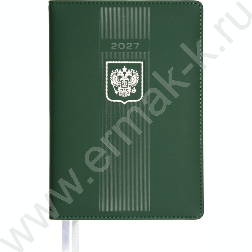 Ежедневник 2027г A5 168л "Major" зеленый /тв.обл. иск.кожа /2 ляссе /с серебристым срезом NEW