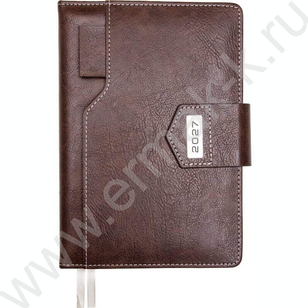 Ежедневник 2027г A5 168л "Prestige" темно-коричневый /тв.обл. иск.кожа /2 ляссе NEW