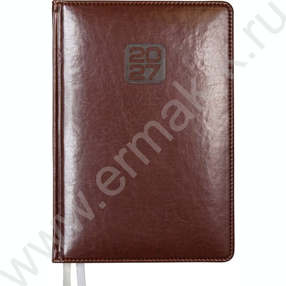 Ежедневник 2027г A5 168л "Bravo" коричневый /тв.обл. иск.кожа /золотой срез /2 ляссе NEW