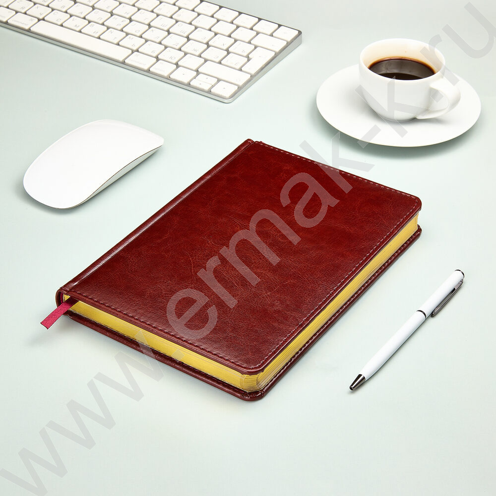 Ежедневник н/дат А5 136л Sidney Nebraska коричневый/золотой обрез,ляссе,линейка
