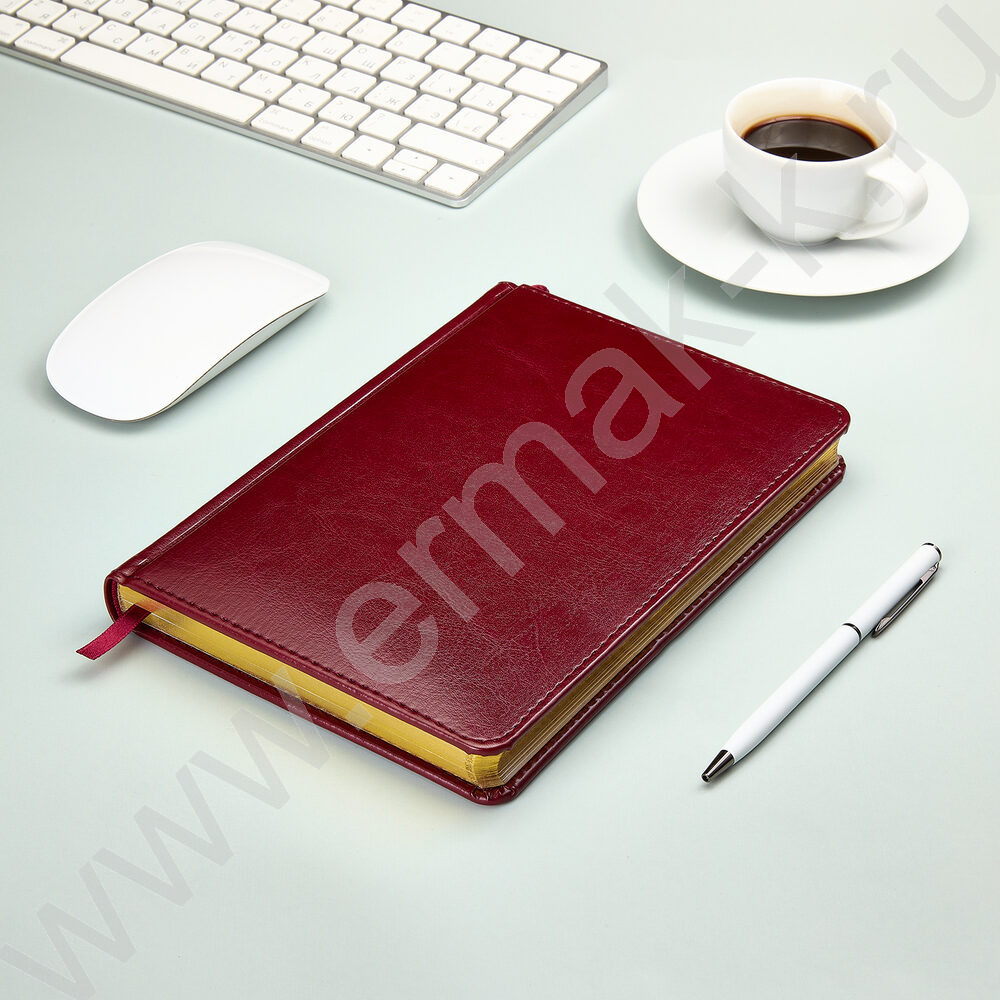 Ежедневник н/дат А5 136л Sidney Nebraska бордовый/золотой обрез,ляссе,линейка