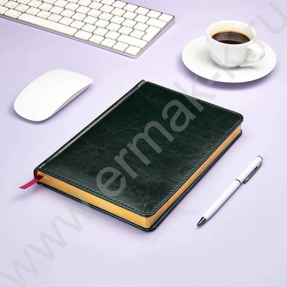 Ежедневник н/дат А5 136л Sidney Nebraska зеленый/золотой обрез,ляссе,линейка