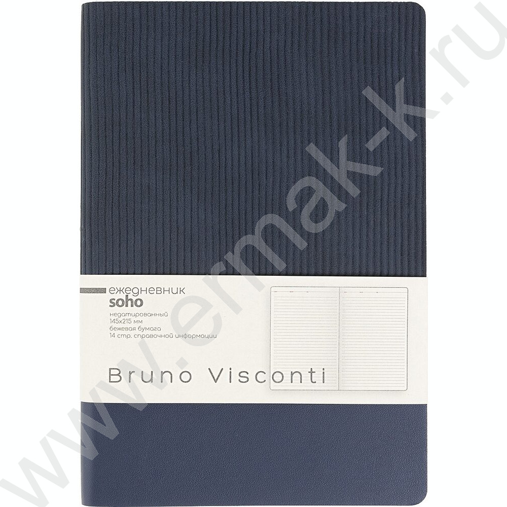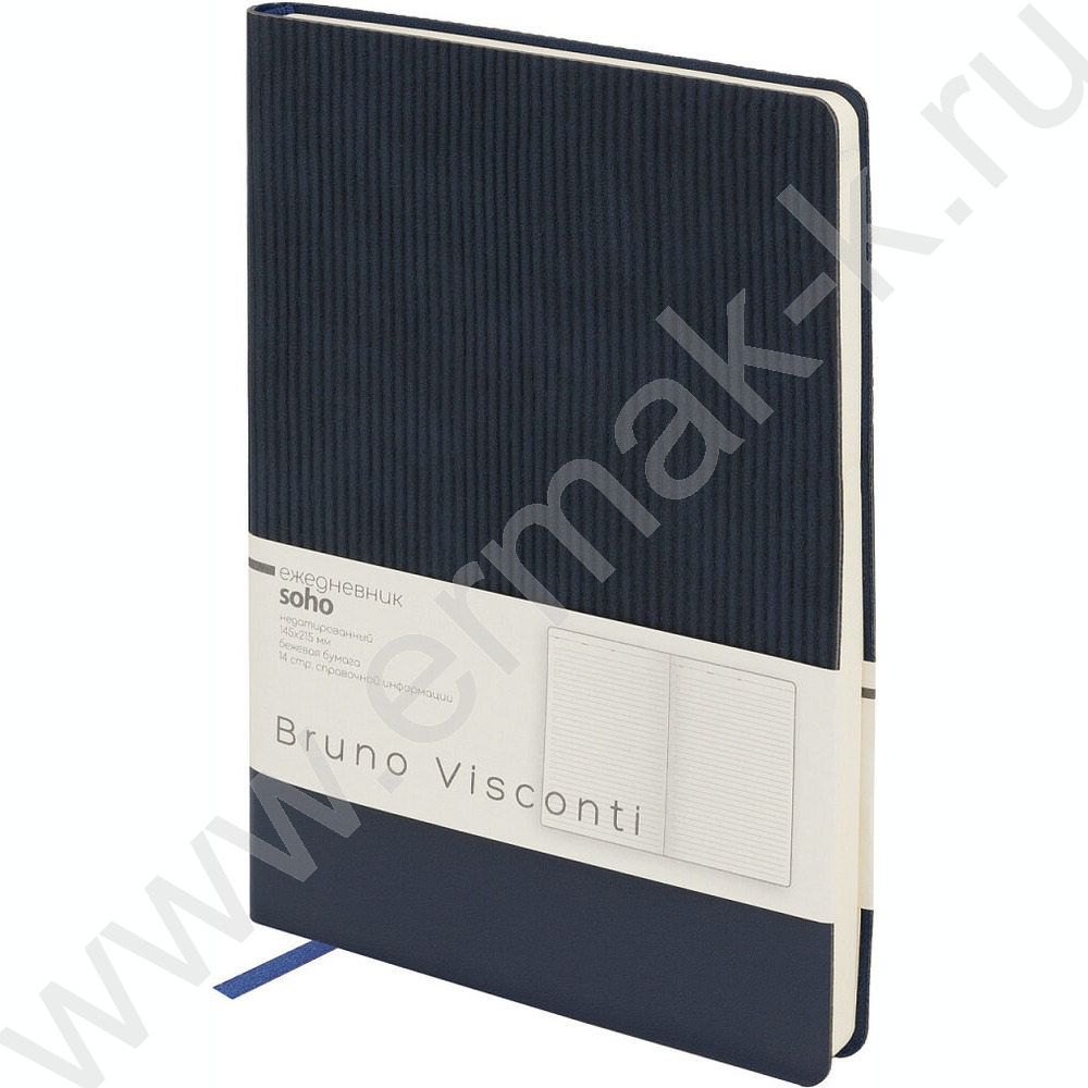 Ежедневник н/дат А5 136л Soho синий /ляссе/блок линейка