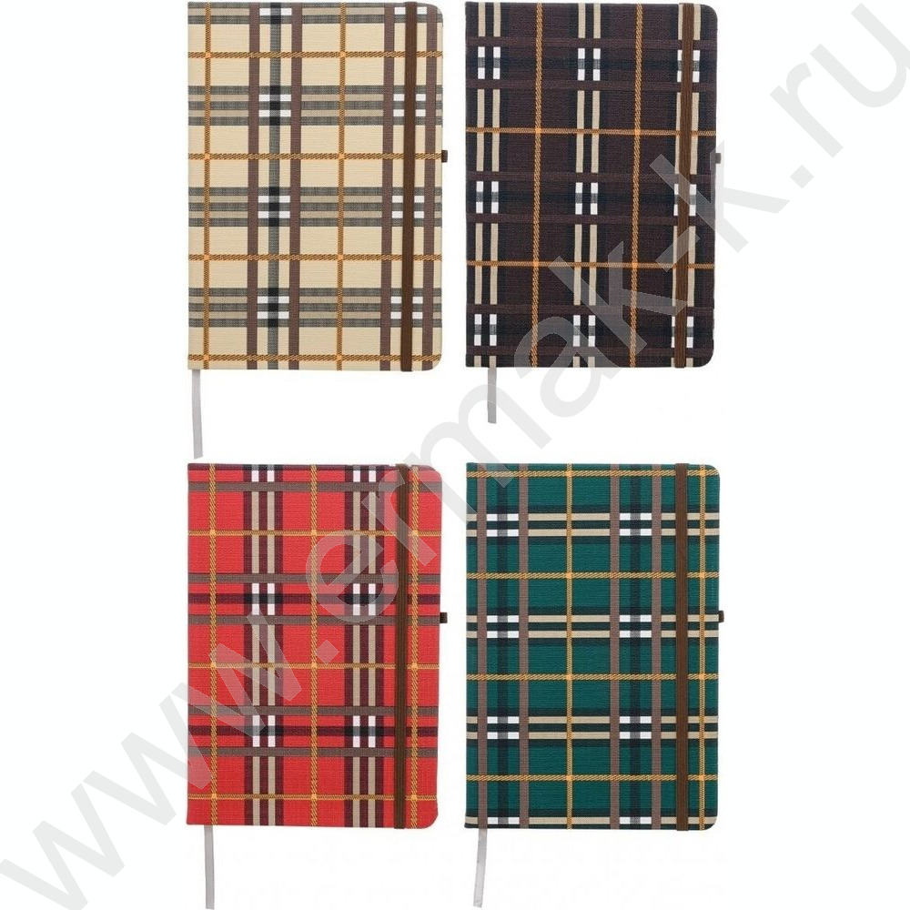 Ежедневник н/дат 21*14,5 80л Шотландка на резинке, блок клетка с ляссе