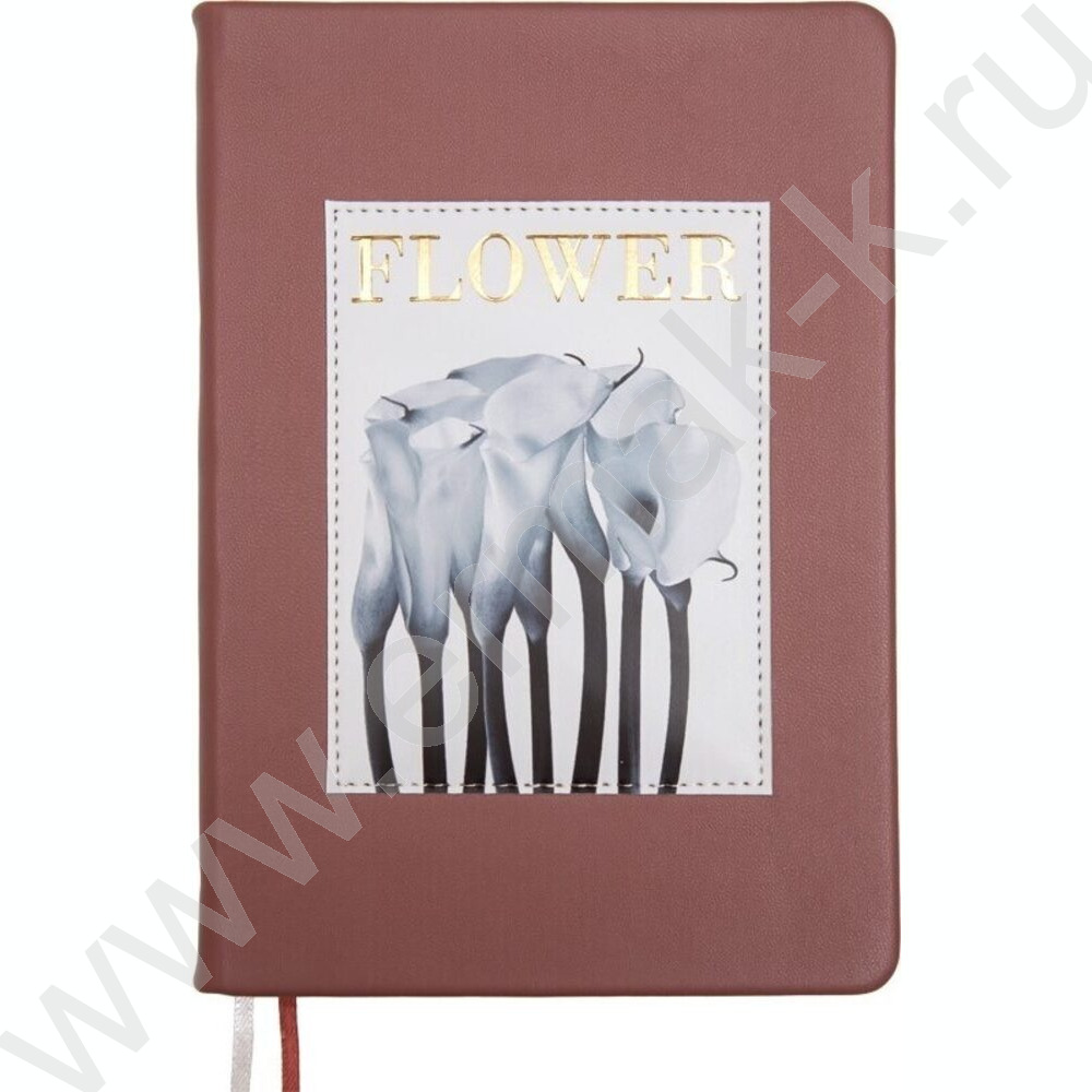 Ежедневник н/дат A5 136л "Flower" темно-розовый /тв.обл. иск.кожа /аппликация /2 ляссе