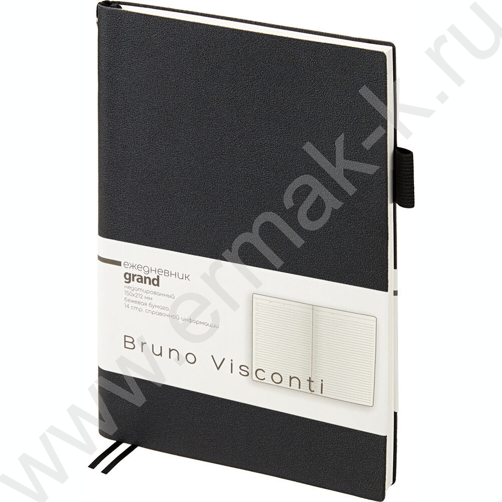 Ежедневник н/дат А5 128л Grand черный,ляссе:два в цвет обложки,линейка