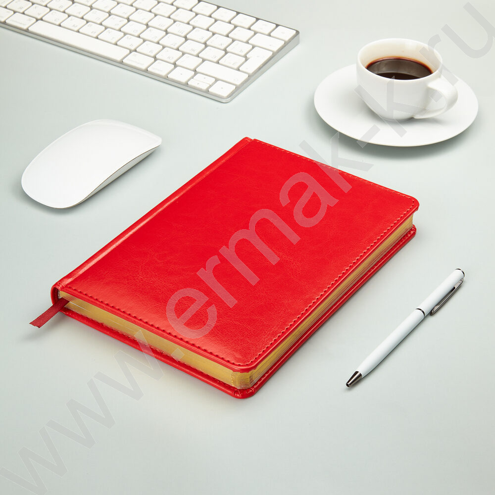 Ежедневник н/дат А5 136л Sidney Nebraska красный/золотой обрез,ляссе,линейка