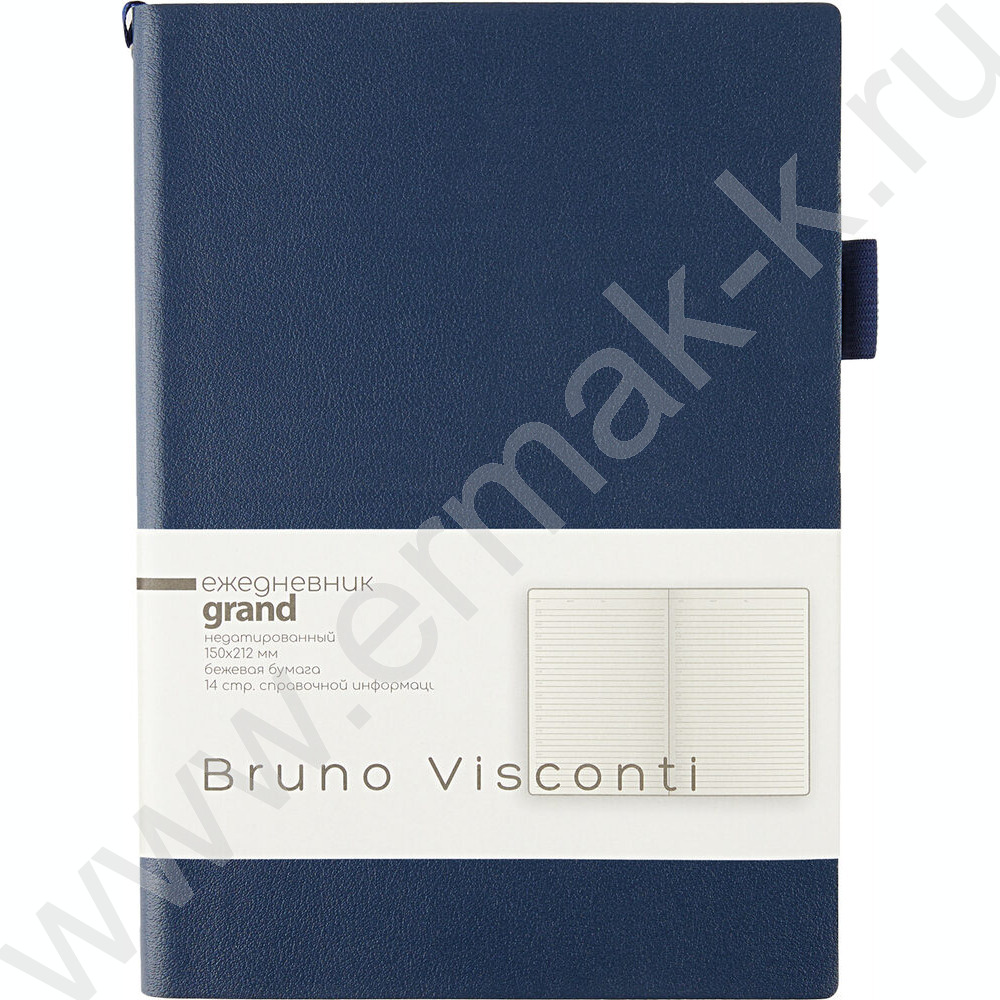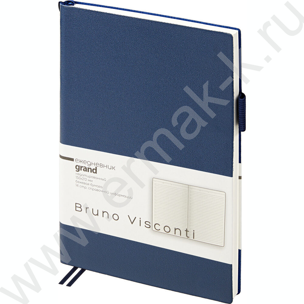Ежедневник н/дат А5 128л Grand темно-синий,ляссе:два в цвет обложки,линейка