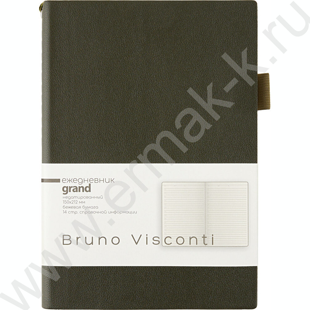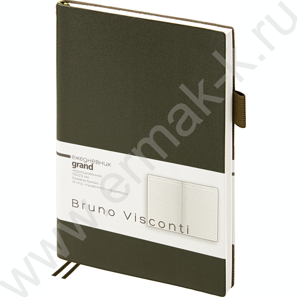 Ежедневник н/дат А5 128л Grand темно-зеленый,ляссе:два в цвет обложки,линейка