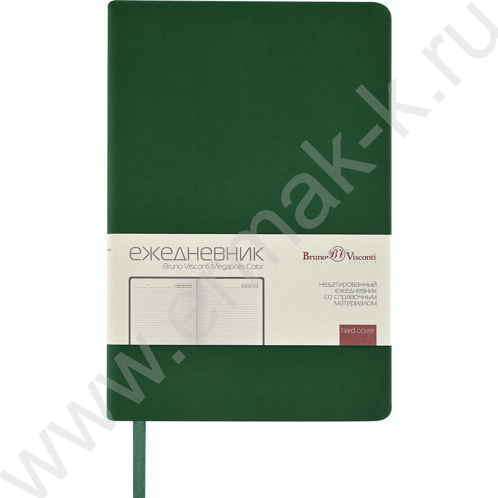 Ежедневник н/дат А5 136л Megapolis Color зеленый,искус.кожа SOFT TOUCH,ляссе,линейка