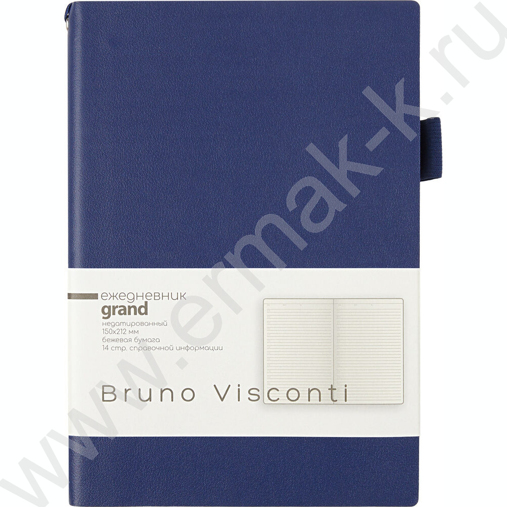 Ежедневник н/дат А5 128л Grand синий,ляссе:два в цвет обложки,линейка