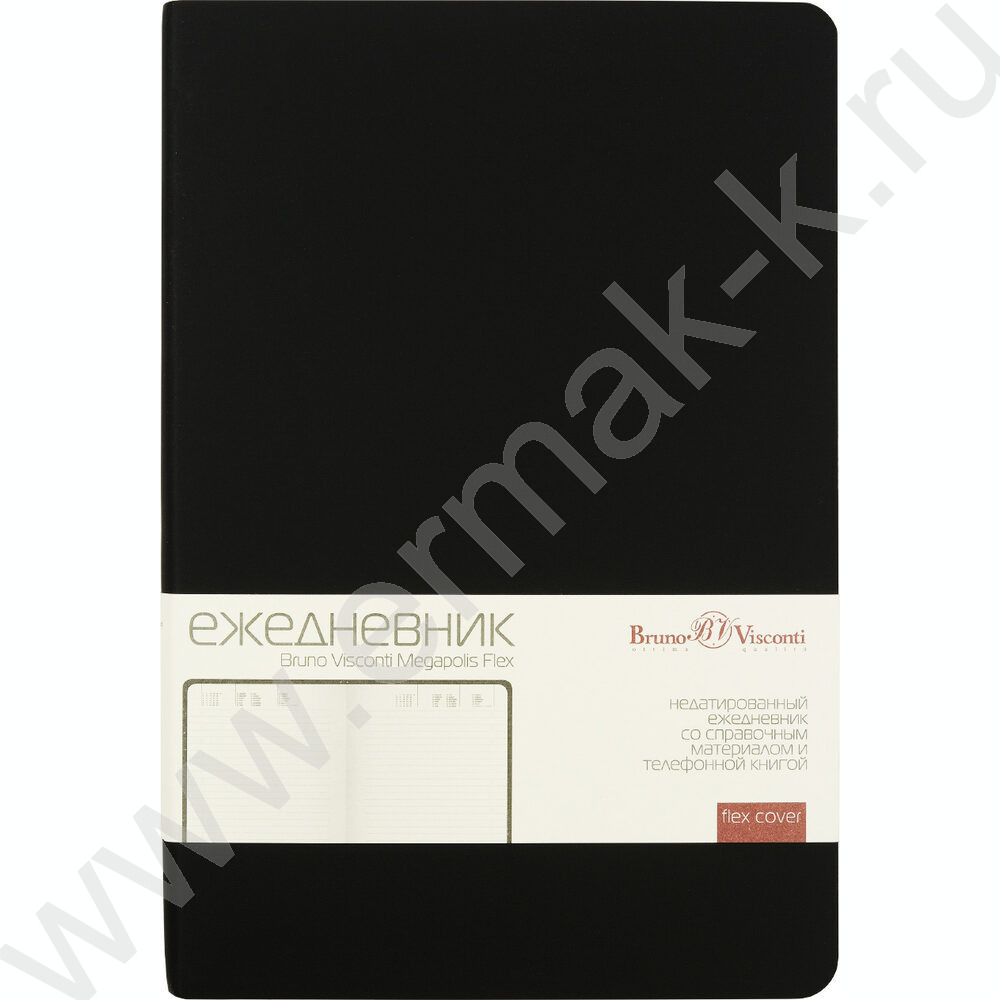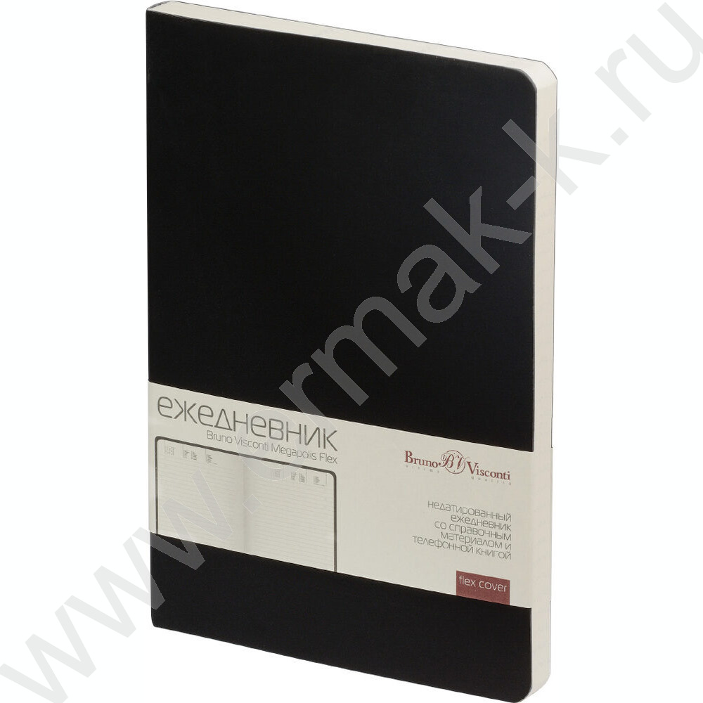 Ежедневник н/дат А5 136л Megapolis Velvet Flex черный,искус.кожа SOFT TOUCH,линейка