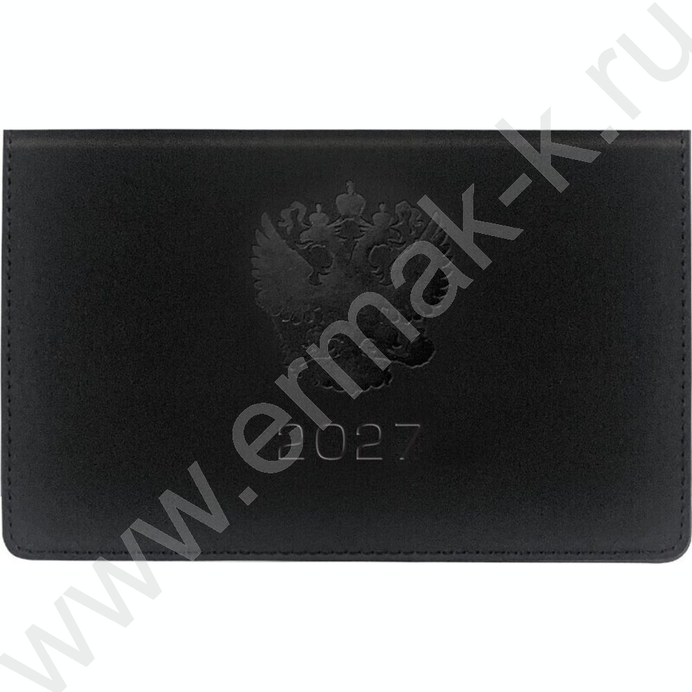 Ежедневник-планинг карманный 2027г "Emblem" черный, тв.обл. иск.кожа с поролоном /1 ляссе NEW