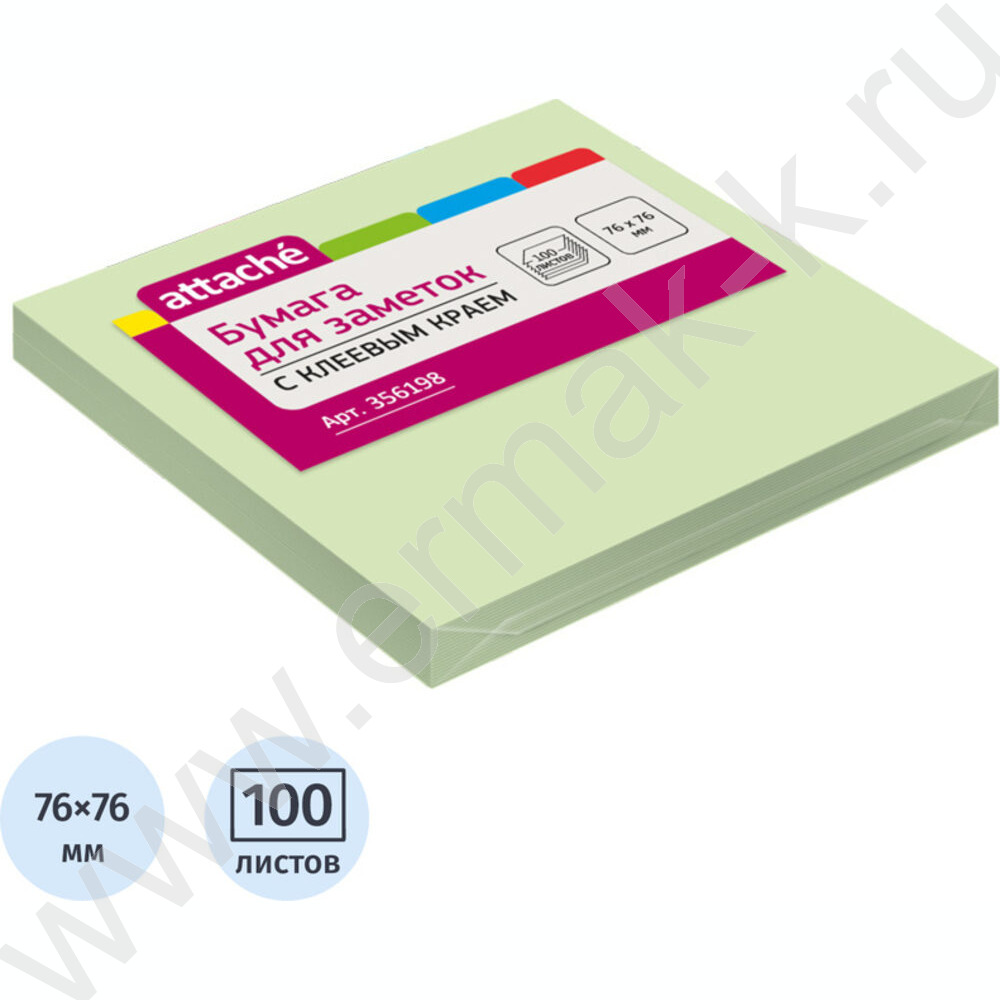 Бумага д/записей 76*76мм /100л, 62г/м², салатовая с липким краем