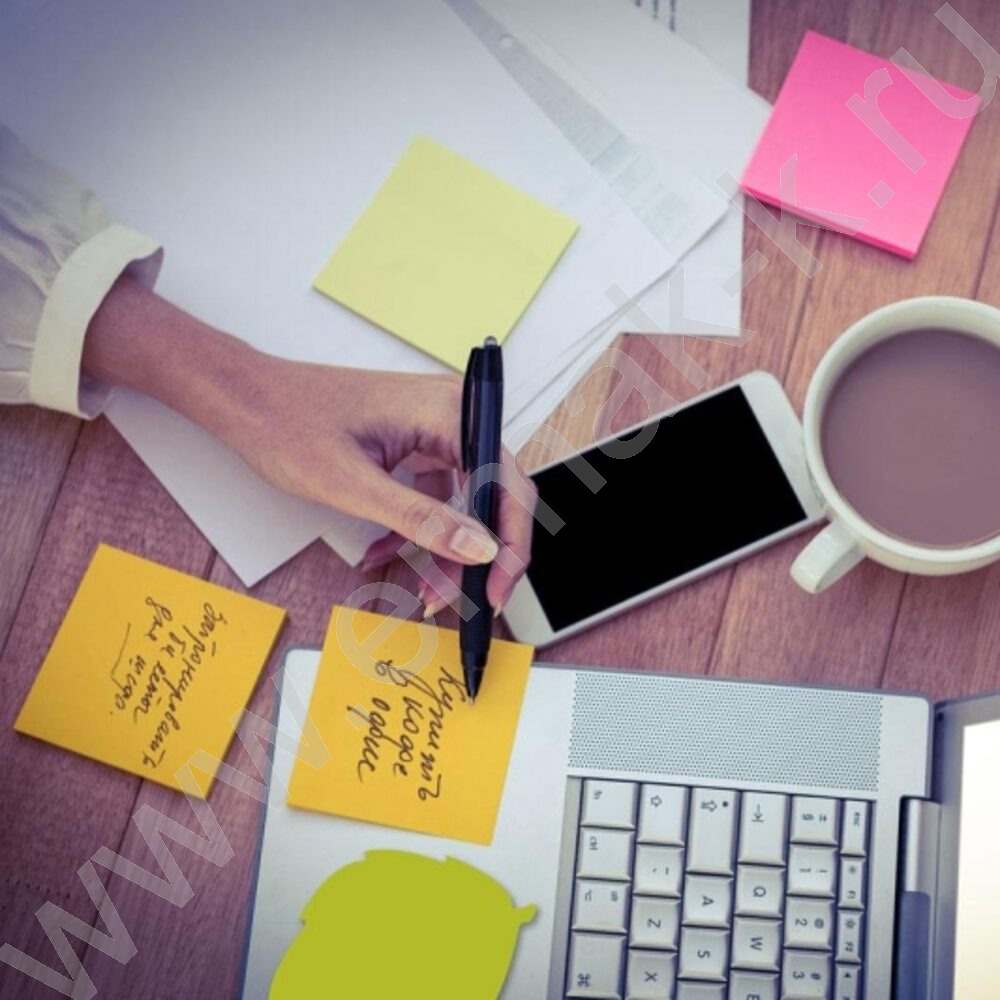 Бумага д/записей 76*76мм /100л, 62г/м², жёлтая с липким краем "Bright colours"