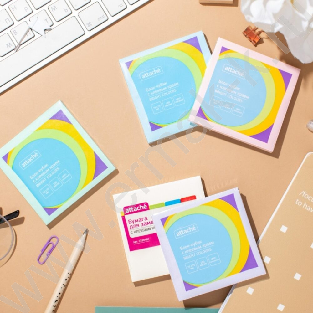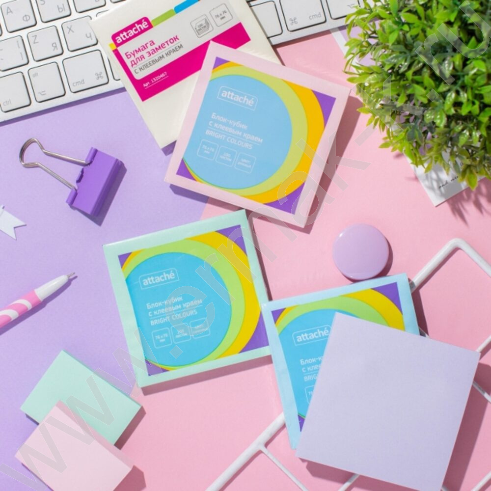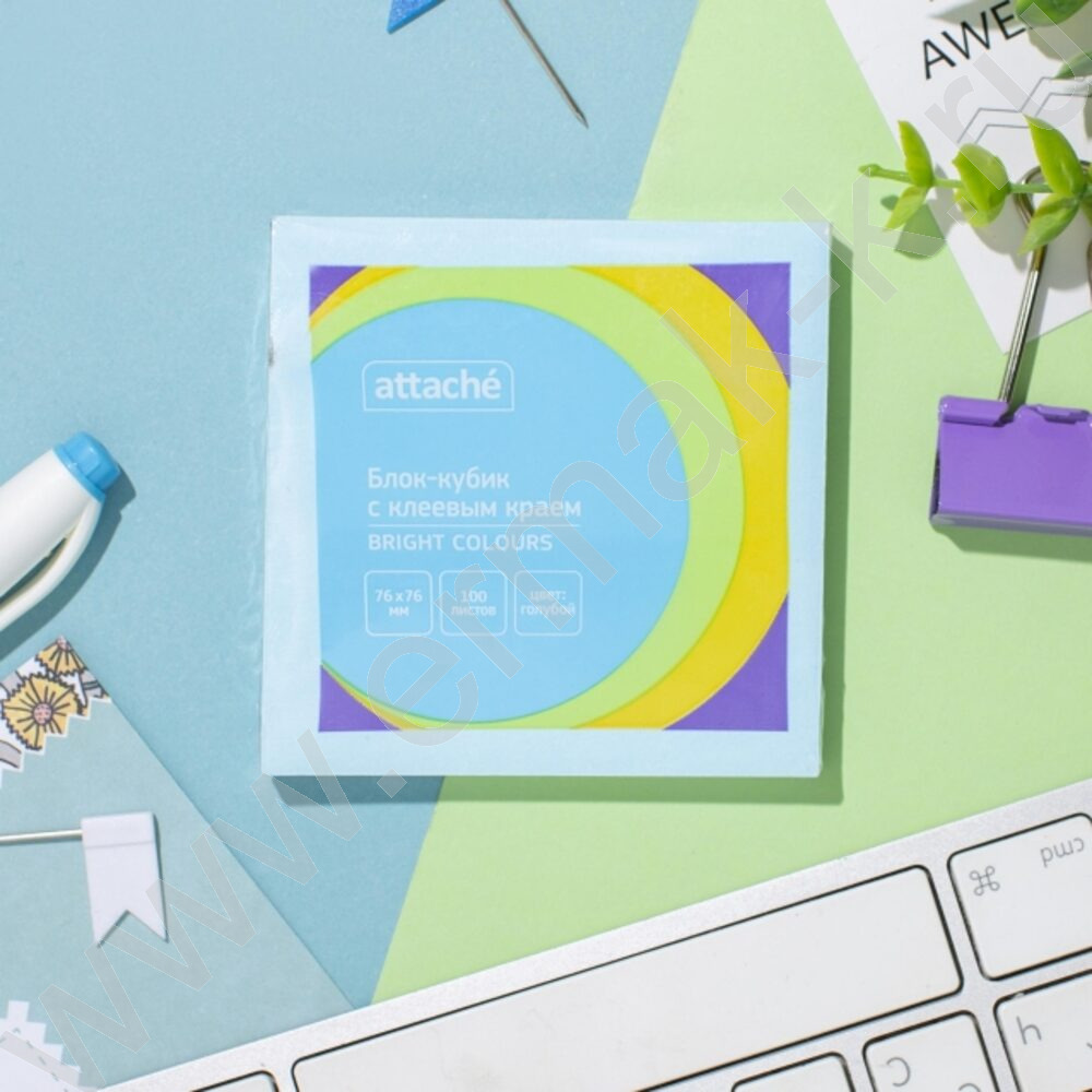 Бумага д/записей 76*76мм /100л, 62г/м², голубая с липким краем "Bright colours"