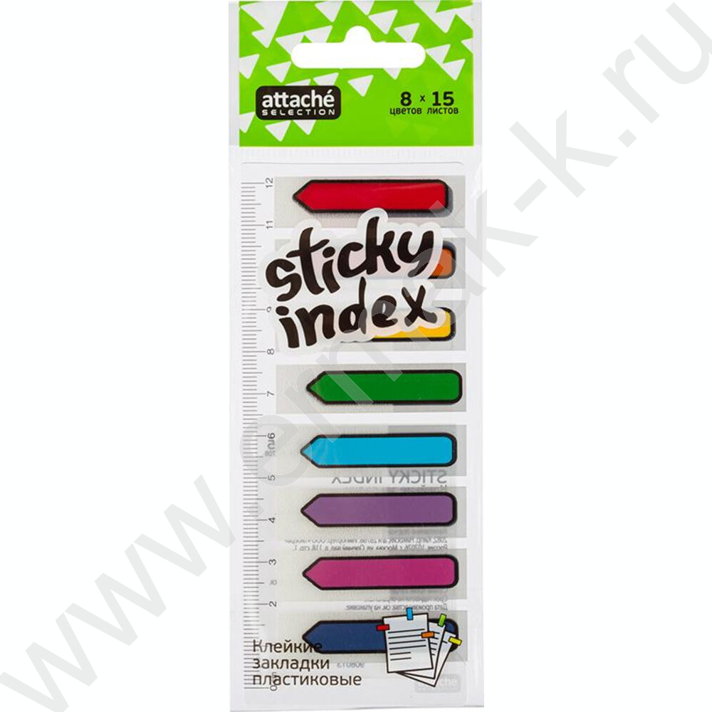 Набор самокл. этикеток-закладок 45*12мм/25л*8цв пластик Стрелка