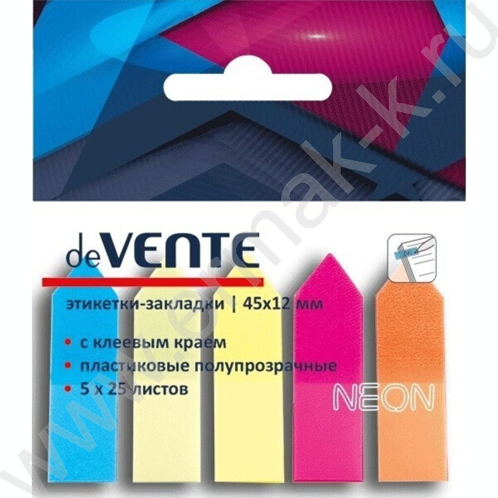 Набор самокл. этикеток-закладок 12*45мм /25л*5цв неон пластик полупр.в форме стрелки пл.блистер
