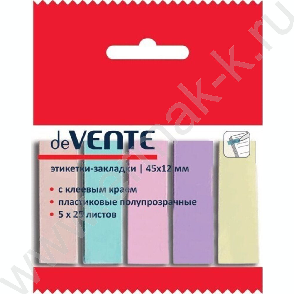 Набор самокл. этикеток-закладок 12*45мм /25л*5цв пастель пластик полупр. пл.блистер европодвес
