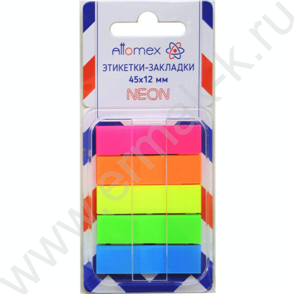 Набор самокл. этикеток-закладок 12*45мм /30л*5цв пластик полупр. в диспенсере Z-сложение
