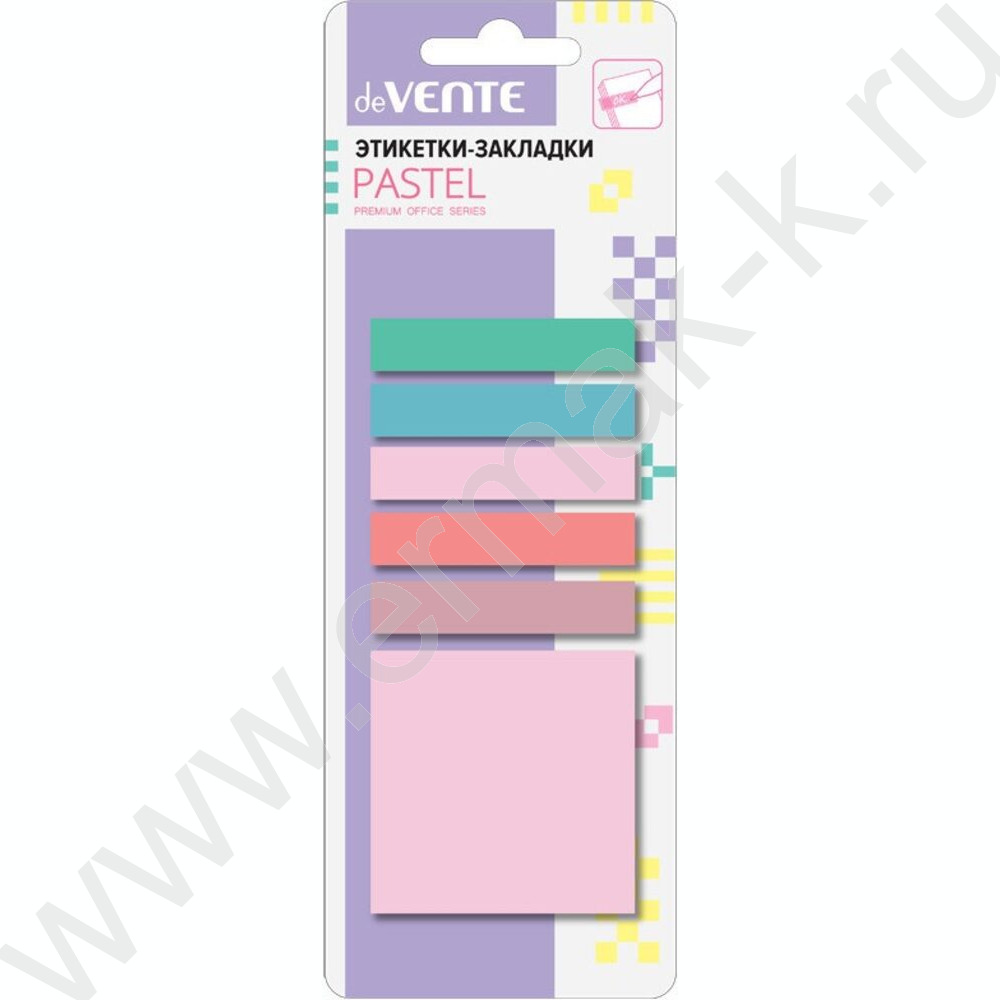Набор самокл. этикеток-закладок 50*50мм и 50*10мм /25л*6 пастельных цветов "Pastel" /блистер