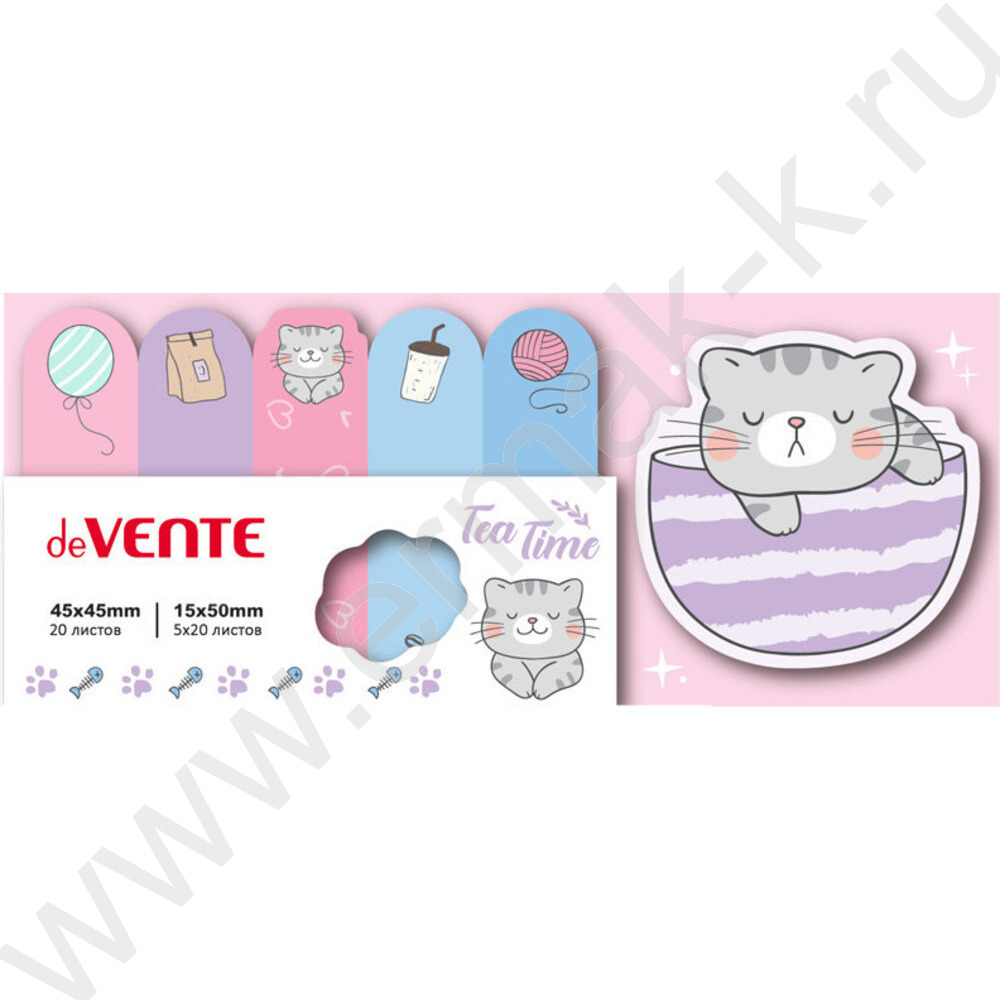 Набор самокл. этикеток-закладок Grey cat 45*45мм и 15*50мм 20 листов, ассорти форм, 6 дизайнов