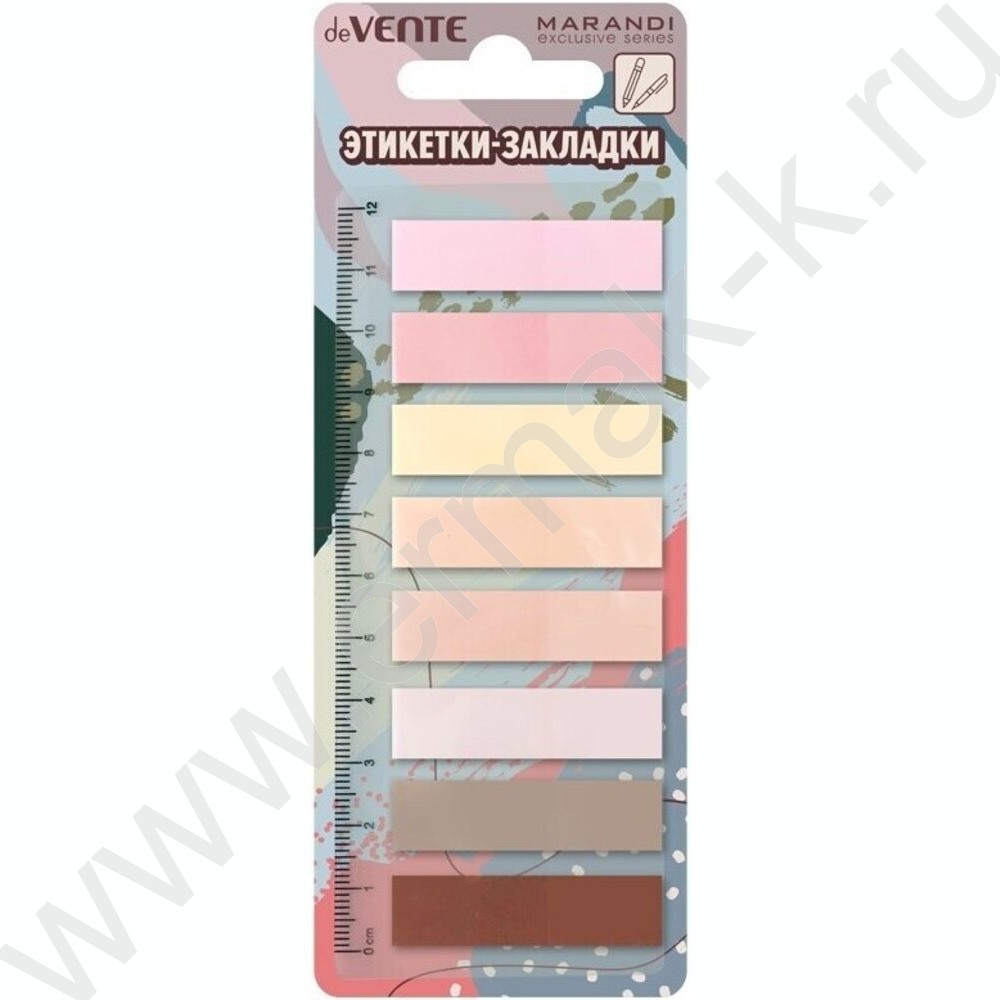 Набор самокл. этикеток-закладок 12*44мм /20л*8 пастель. цветов "Marandi" /пласт. блистер